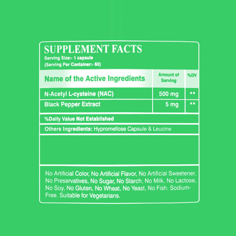 Verbeterd met Zwarte Peper Extract: Geformuleerd met 5 mg Piperine om de absorptie van NAC te optimaliseren, zodat u het maximale voordeel krijgt bij elke dosis.